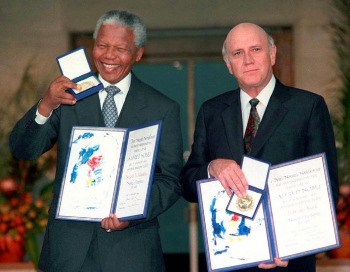 By then, de Klerk and Mandela had been awarded the Nobel Peace Prize in 1993 for their often-tense cooperation in moving South Africa away from institutionalized racism and toward democracy.